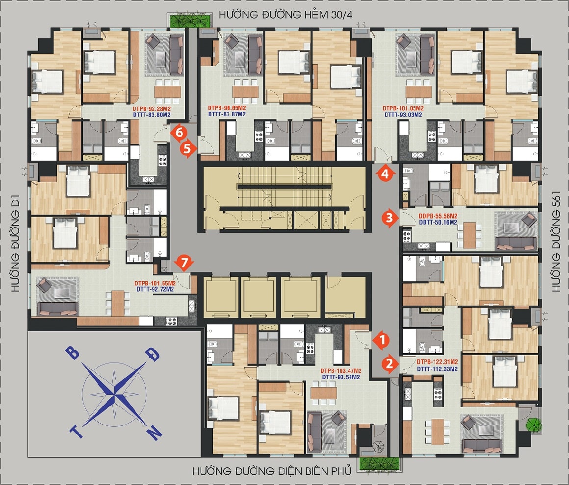 | Diện tích căn hộ | 55 – 122m2 |
