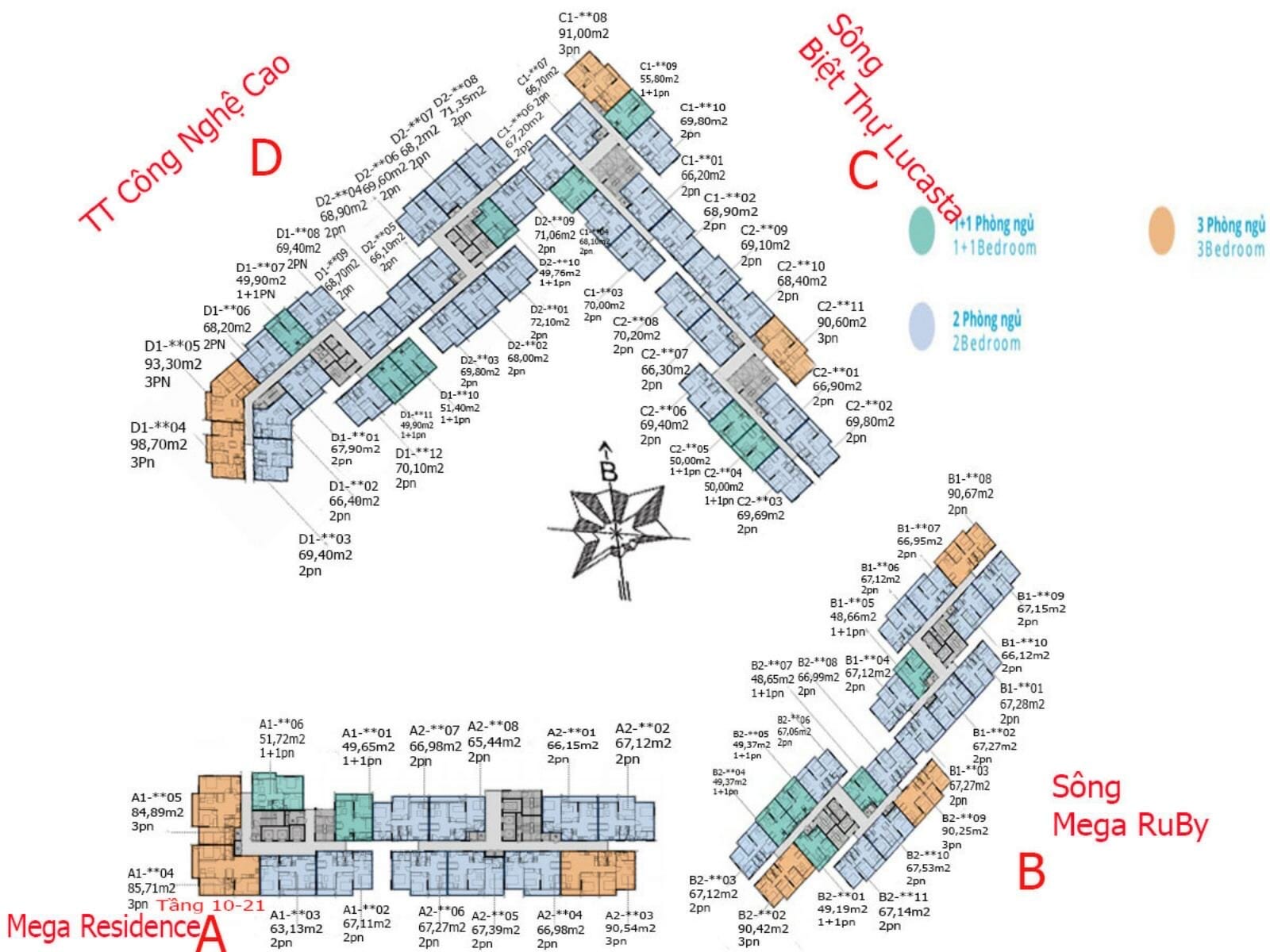 | 2PN – 2WC (căn góc) | 67m² | – | Nội khu | Nội thất đẹp | 4,8 tỷ |