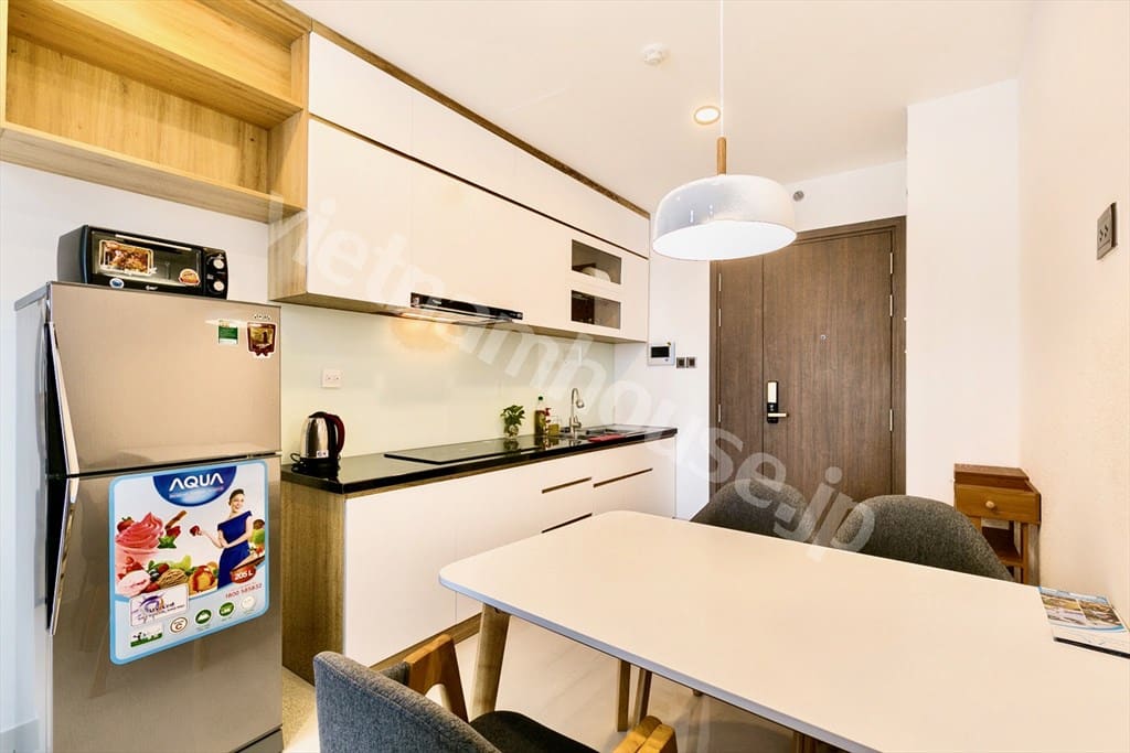 Không gian bên trong được bố trí hợp lý với phòng ngủ rộng rãi, tủ quần áo âm tường, bàn làm việc, cùng hệ thống nước nóng lạnh hiện đại. Phòng bếp đầy đủ tiện nghi với bếp điện, lò vi sóng, tủ lạnh, bàn ăn, giúp bạn dễ dàng chuẩn bị bữa ăn mỗi ngày. Phòng khách trang bị ghế sofa lớn, TV và nội thất sang trọng, tạo cảm giác thoải mái khi trở về nhà sau một ngày dài.