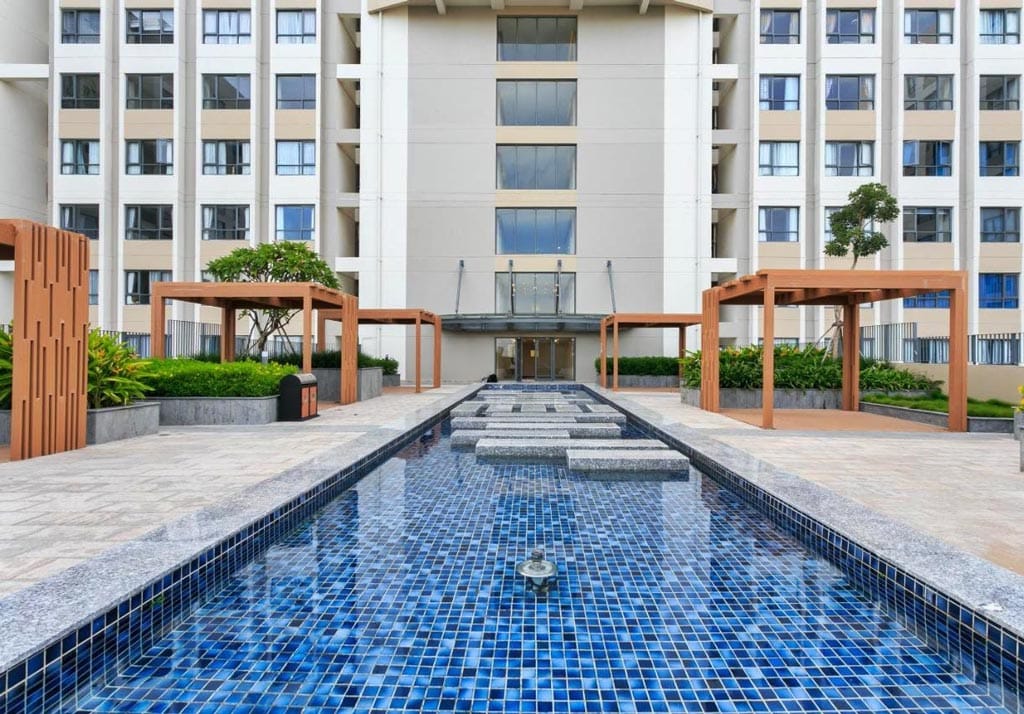 - Hồ bơi tràn bờ rộng 450 m² cho người lớn và 55 m² cho trẻ em tại tầng 5 tháp A; bên cạnh đó là hồ bơi 180 m² tại tầng thượng tháp B, tạo không gian thư giãn riêng tư.