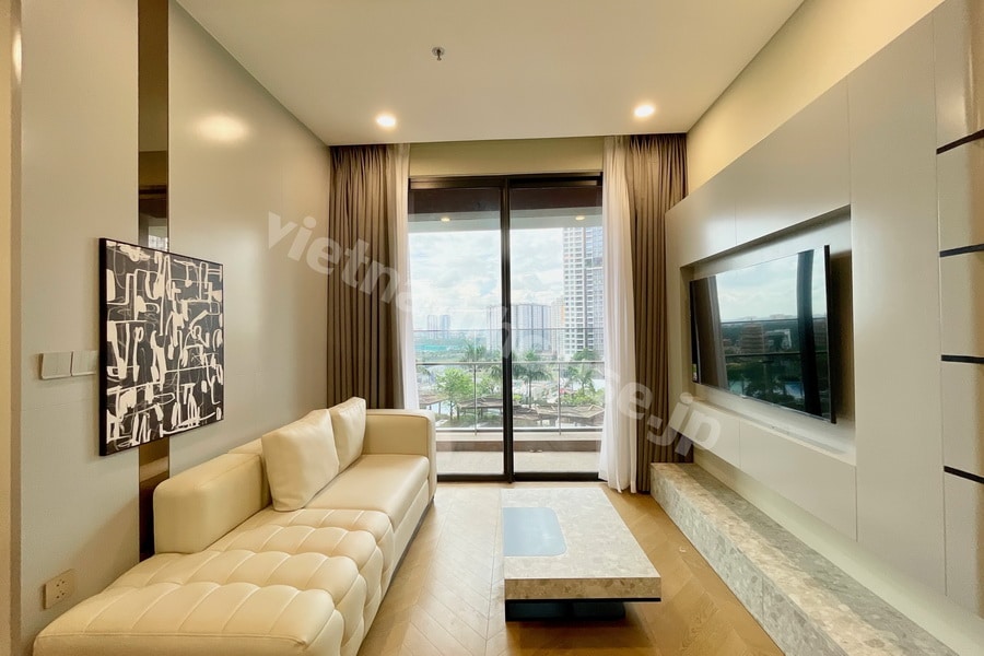 Thuê căn hộ 2PN Lumiere Riverside – Không gian tinh tế, tông beige chủ đạo, nội thất đầy đủ