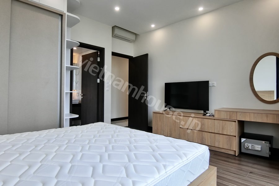 Ba phòng ngủ được bố trí hợp lý, riêng tư và đầy đủ tiện nghi. Giường ngủ kích thước lớn, chất liệu cao cấp, mang đến cảm giác dễ chịu sau một ngày dài làm việc. Tone màu hài hòa giữa nội thất và ánh sáng tự nhiên giúp mỗi căn phòng luôn giữ được sự thoải mái và thoáng đãng.