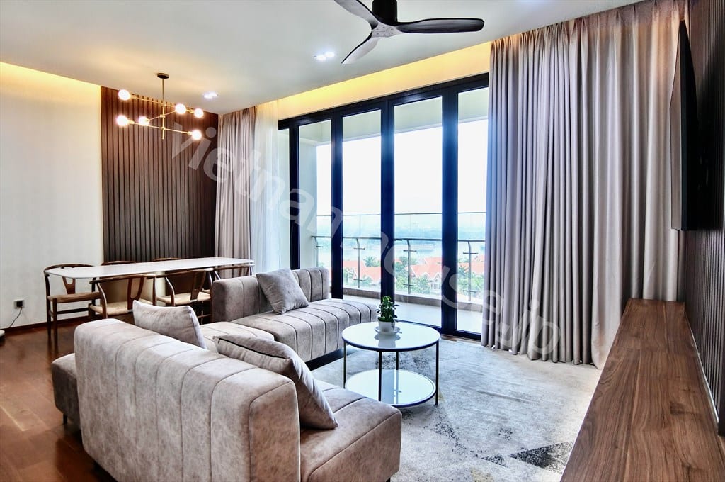 Nằm ở tầng trung – vị trí lý tưởng để đón nắng, tránh ồn – căn hộ nổi bật với không gian sống mở kết nối liền mạch giữa phòng khách, khu ăn uống và ban công thoáng mát. Thiết kế 3 phòng ngủ rộng rãi mang lại sự riêng tư, thoải mái cho gia đình nhiều thế hệ hoặc nhóm chuyên gia nước ngoài cùng sinh sống.