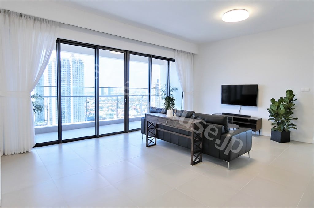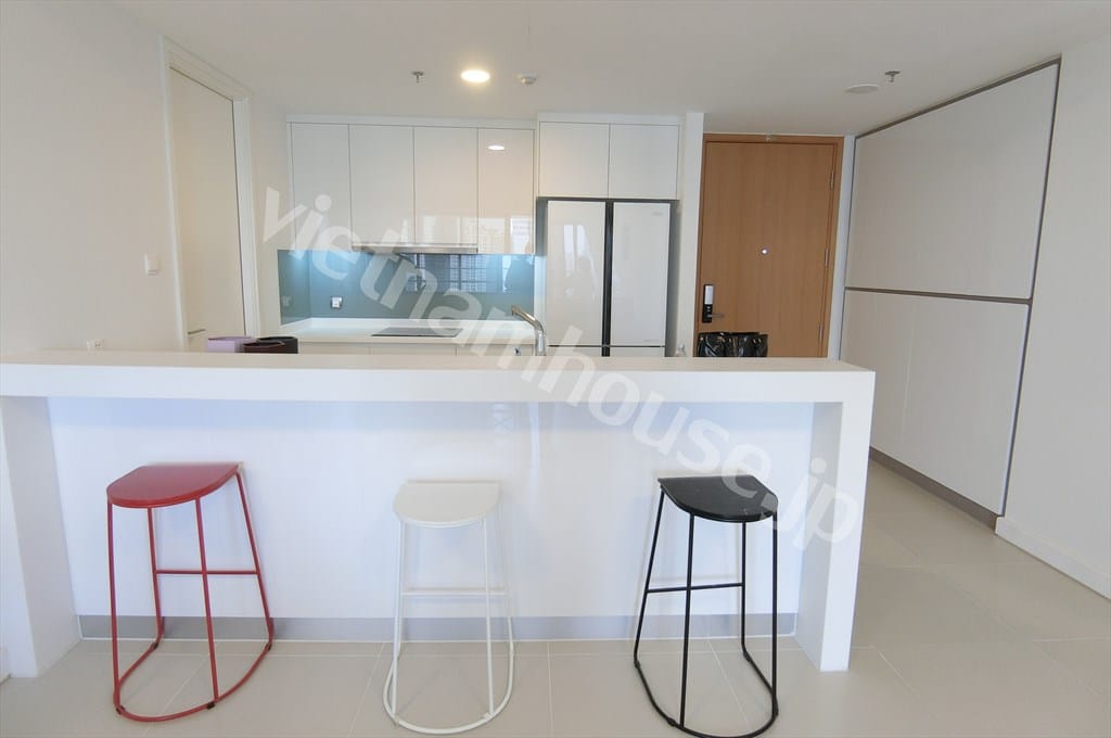 Phòng tắm chính có cả bồn tắm và vòi sen riêng biệt – đáp ứng nhu cầu thư giãn lẫn sinh hoạt hàng ngày. Khu vực bếp được thiết kế mở, hiện đại với bếp điện, lò vi sóng, hệ tủ kệ rộng rãi và quầy bar ăn sáng tiện dụng. Điểm cộng lớn là cửa trượt kính dẫn ra ban công lớn – nơi bạn có thể tận hưởng gió trời và không gian thư giãn riêng tư.
