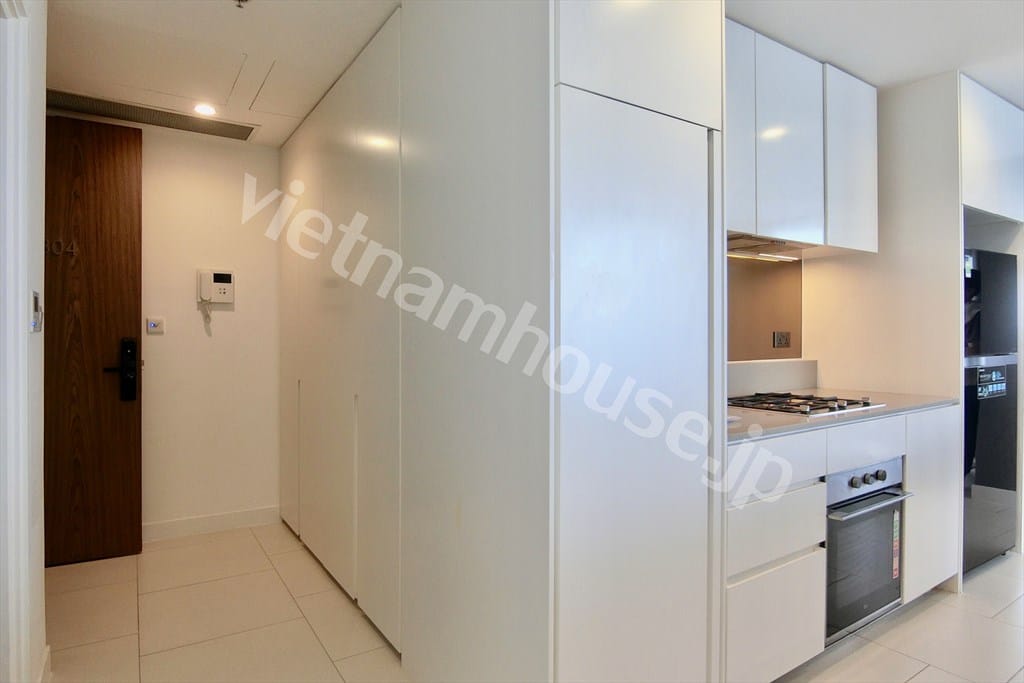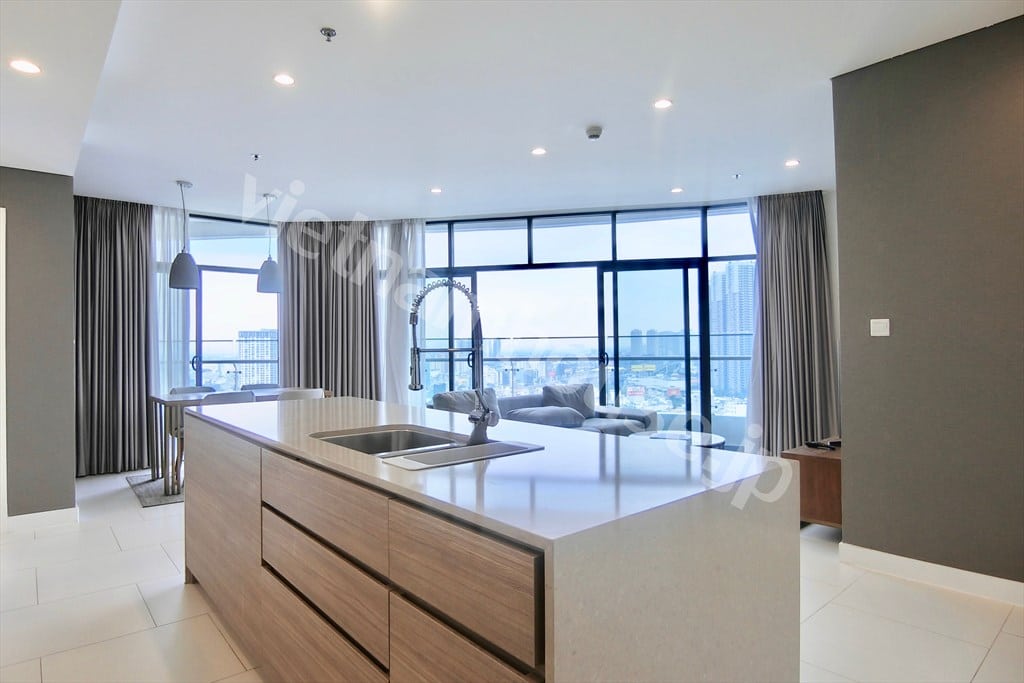 Căn hộ sở hữu thiết kế 2PN – 2WC, tối ưu diện tích và công năng. Phòng khách rộng rãi kết nối trực tiếp với khu vực ăn uống, tạo cảm giác thoáng đãng. Nhà bếp tiện nghi với tủ gỗ cao cấp, bếp điện và không gian lưu trữ rộng rãi, giúp bạn có những trải nghiệm nấu nướng tuyệt vời.
