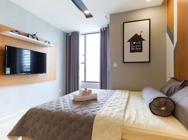 - Giường lớn, tủ quần áo và cửa sổ đón ánh sáng tự nhiên.