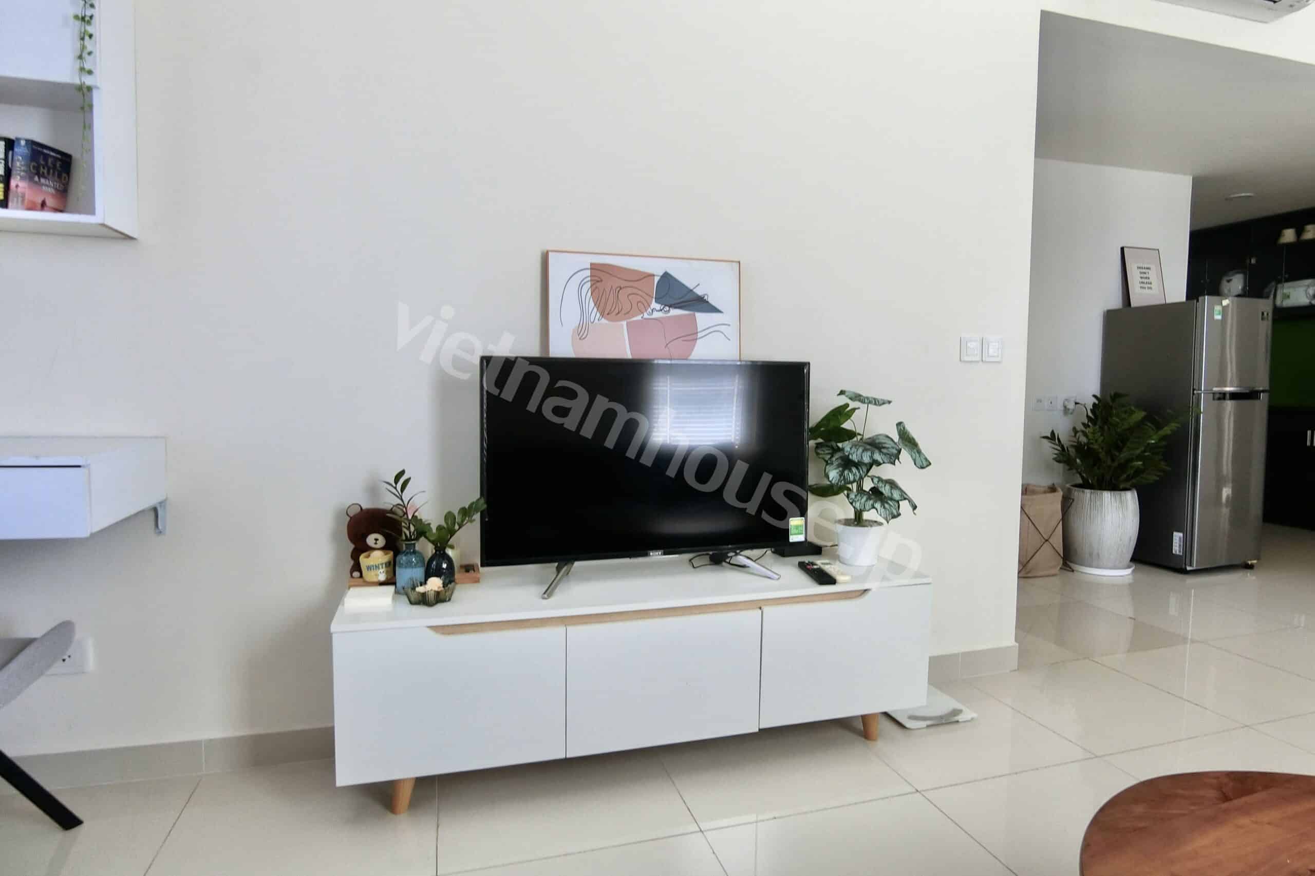 Căn hộ có phòng khách thoáng đãng, thiết kế không gian mở giúp tối ưu diện tích và ánh sáng tự nhiên. Nội thất hiện đại, bố trí hợp lý tạo nên không gian sống tiện nghi, ấm cúng.