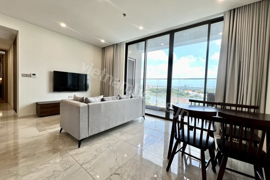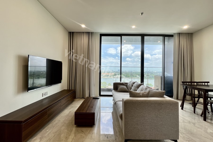 Tọa lạc ở phía Bắc Thảo Điền, căn hộ nằm trong khu vực dân cư biệt lập, yên tĩnh, tách biệt với sự ồn ào của phố thị. Từ cửa sổ phòng khách và phòng ngủ, bạn sẽ được đón chào mỗi ngày bởi khung cảnh xanh mát của cây cối và dòng sông Sài Gòn hiền hòa – một trải nghiệm sống hiếm có giữa lòng thành phố.