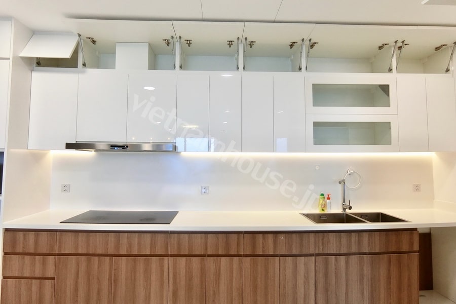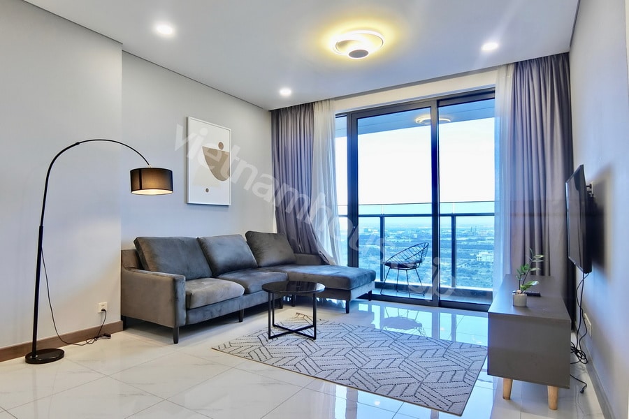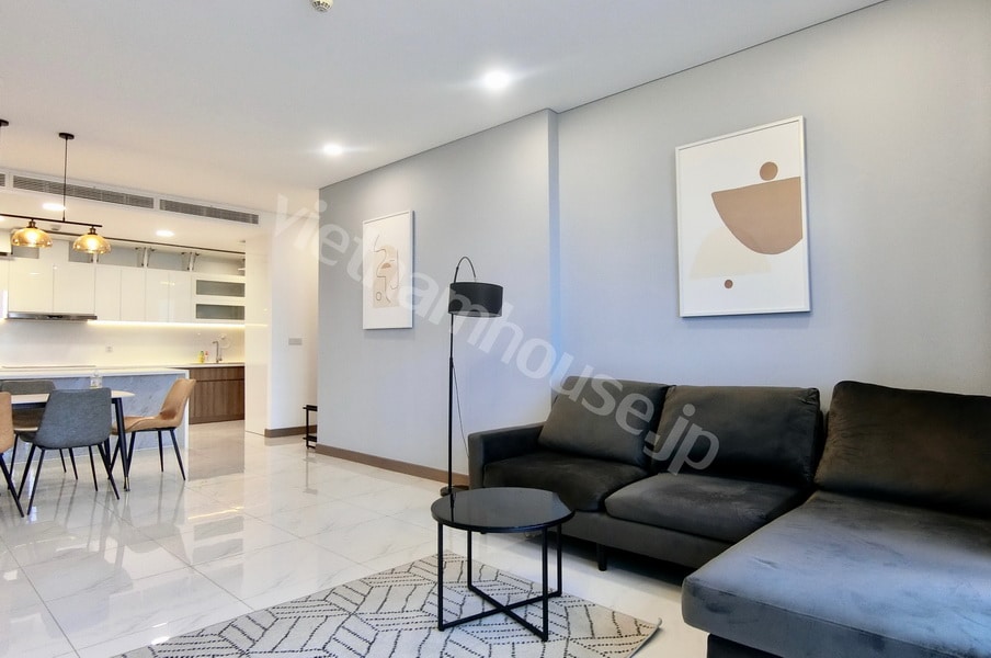 Toàn bộ căn hộ được bố trí hài hòa, phòng khách thoáng với thiết kế tinh tế, mở ra tầm nhìn sông Sài Gòn tuyệt đẹp từ tầng cao. Khu bếp và phòng ăn được đầu tư kỹ lưỡng cả về thẩm mỹ lẫn công năng, mang lại sự thuận tiện trong sinh hoạt hàng ngày.